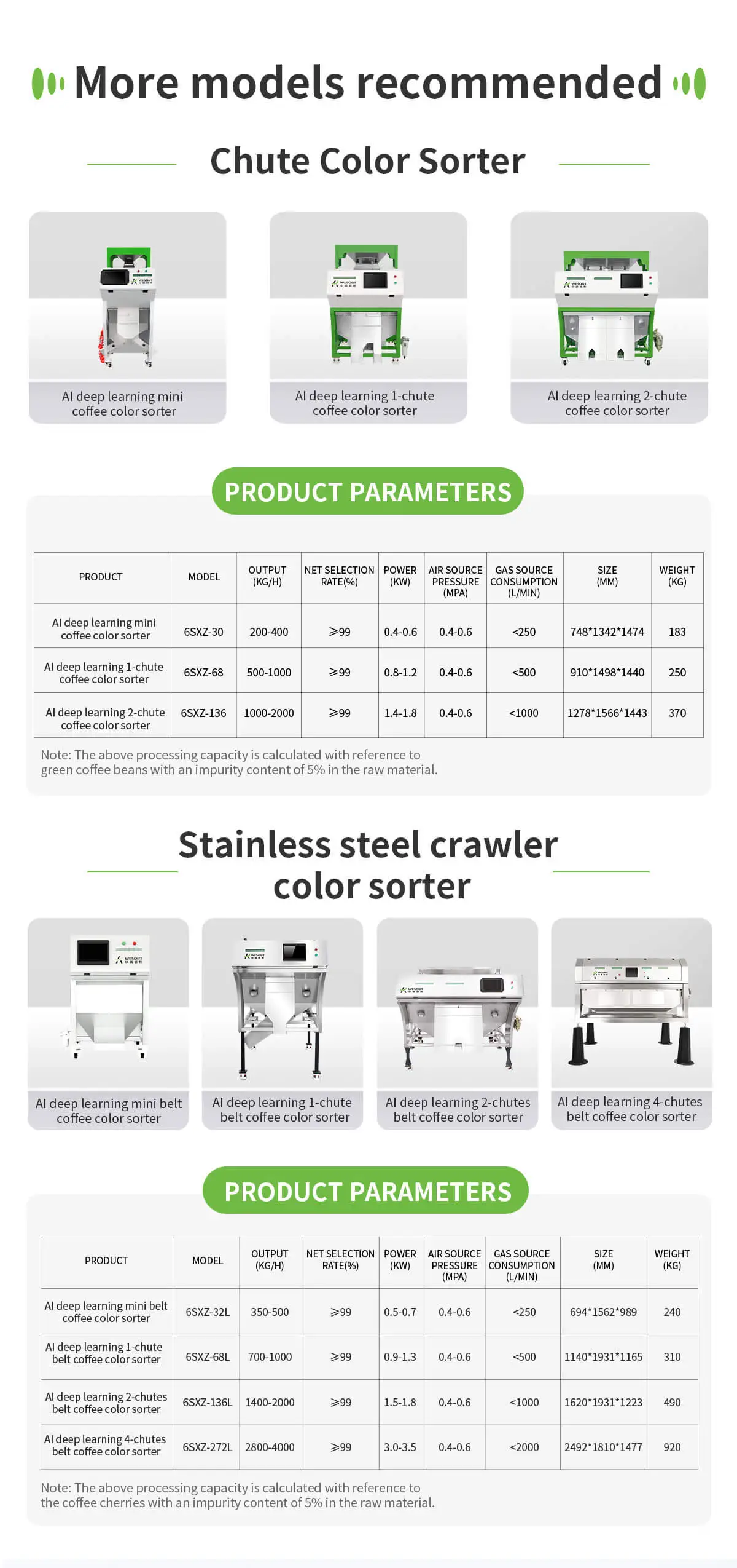 WESORT focuses on coffee sorting. Its advanced technology accurately removes various defective beans and foreign substances. The high sorting accuracy, up to 99.9% purity, guarantees the quality of coffee. From coffee fruit to ripe beans, it offers t...